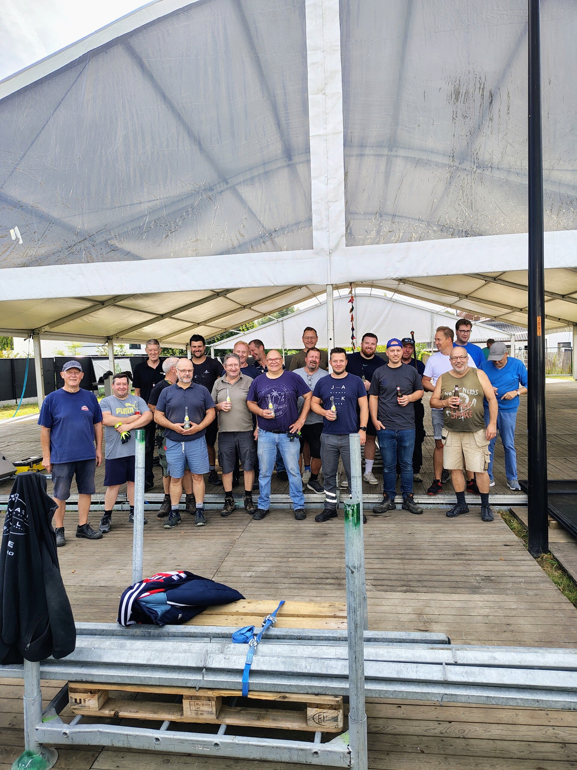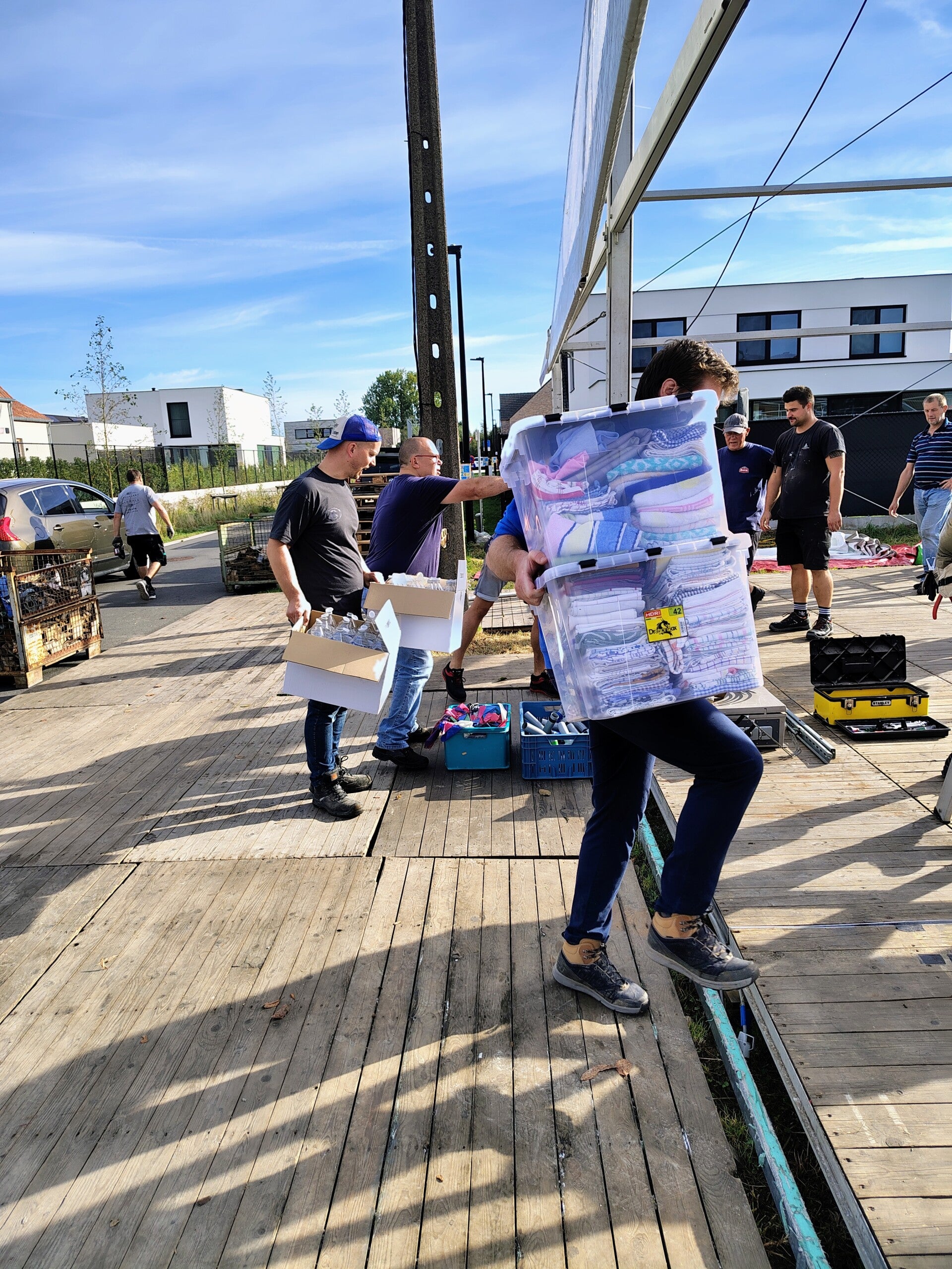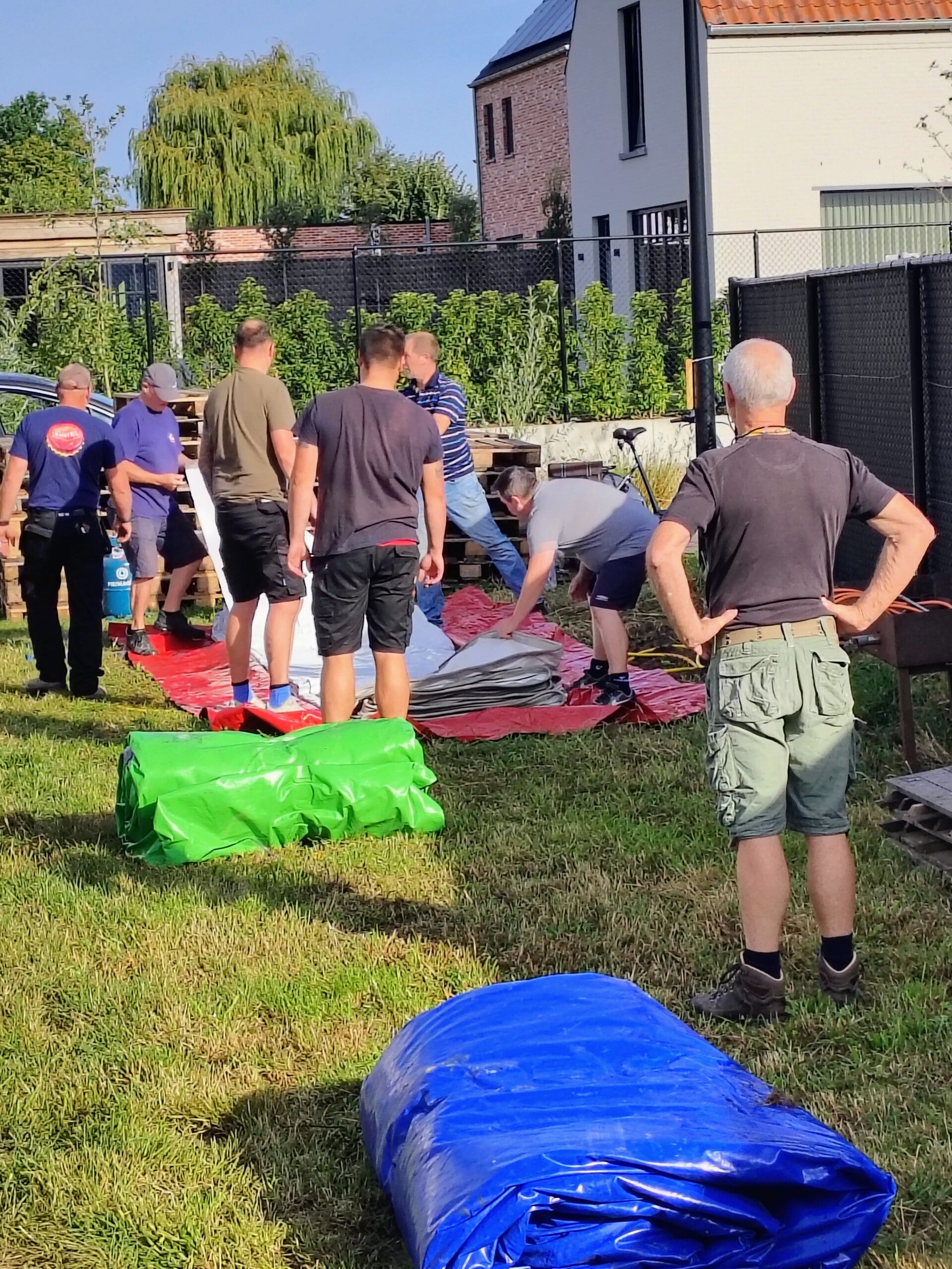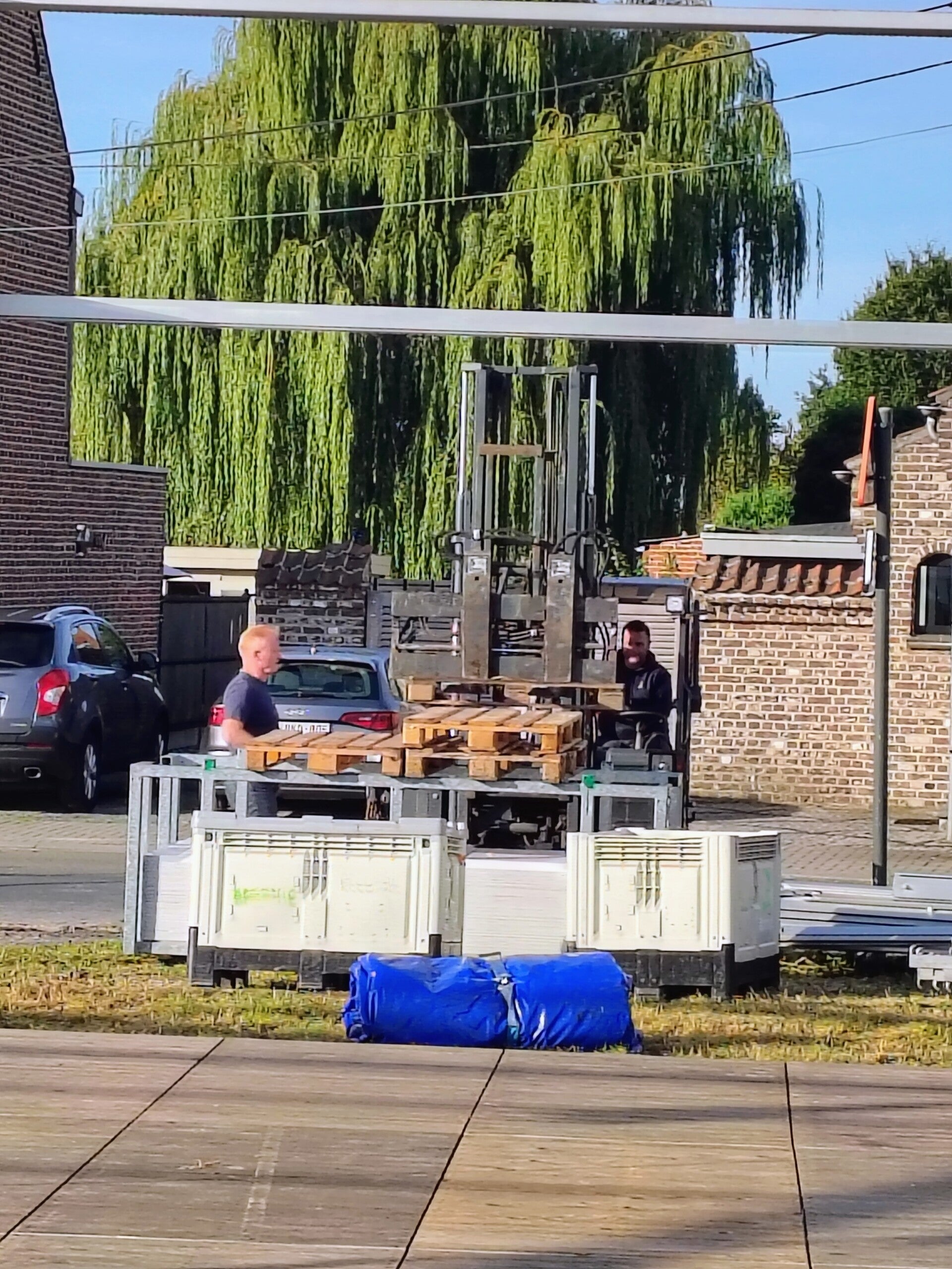 Materiaal halen in de schuur en laden op de vrachtwagen.